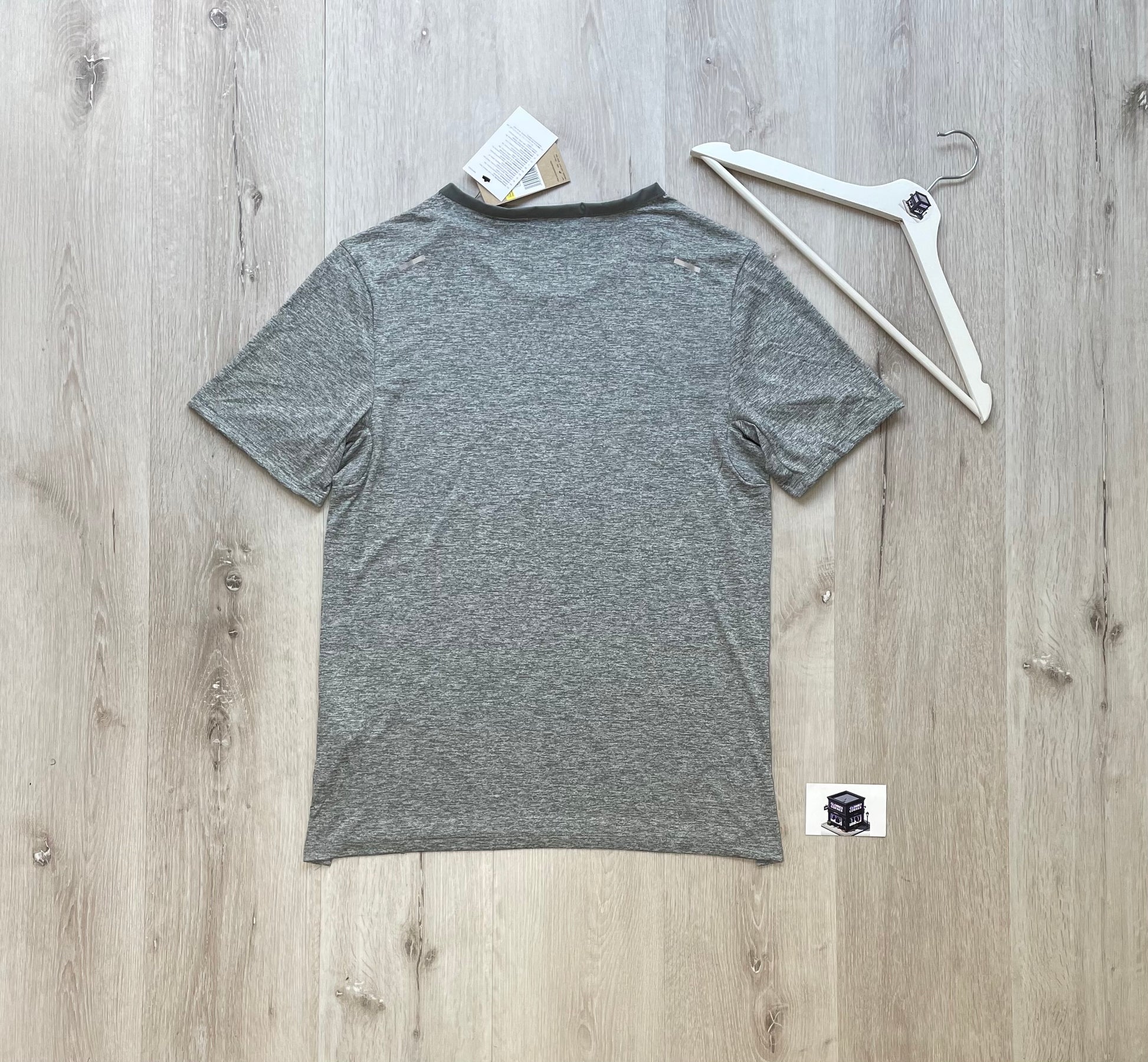 Upgrade your training staples with this men's Stride T-Shirt from Nike. In a Smoke Grey colourway with an all-over heathered effect, this standard-fit T-shirt is cut smooth, breathable polyknit fabric for lasting comfort. It's engineered with sweat-wicking Dri-FIT ADV technology to keep you dry, and has a classic crew neckline with sporty raglan sleeves for an easy feel. Finished with a reflective Swoosh graphic at the chest. Machine washable.