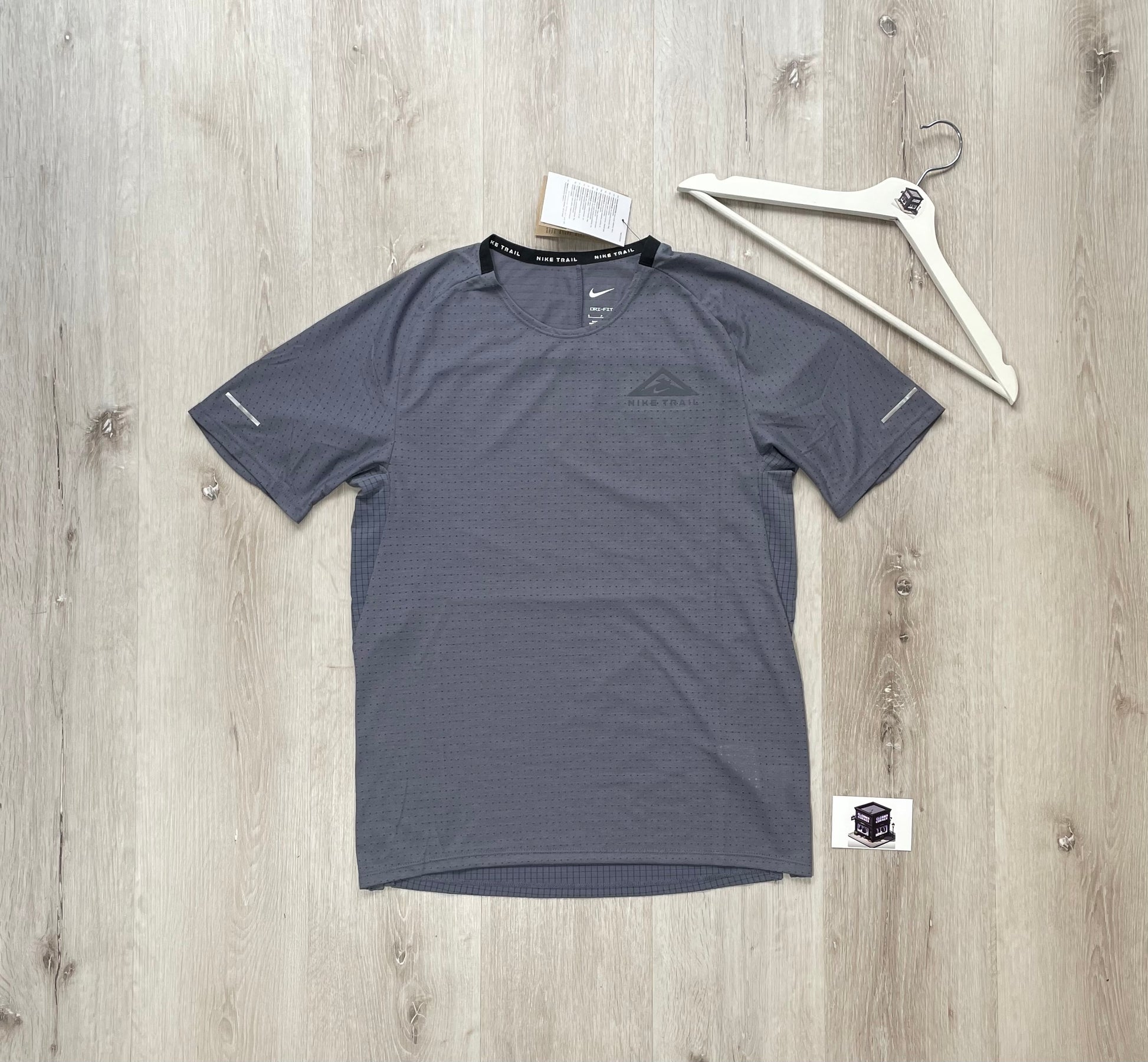 Settle in for long, comfortable runs across the trails with the Nike Dri-FIT Trail Solar Chase T-Shirt in Cement Grey/Black which combines breathable fabric, with extra breathable underarm sections and sweat wicking technology to help you stay at your best for longer.